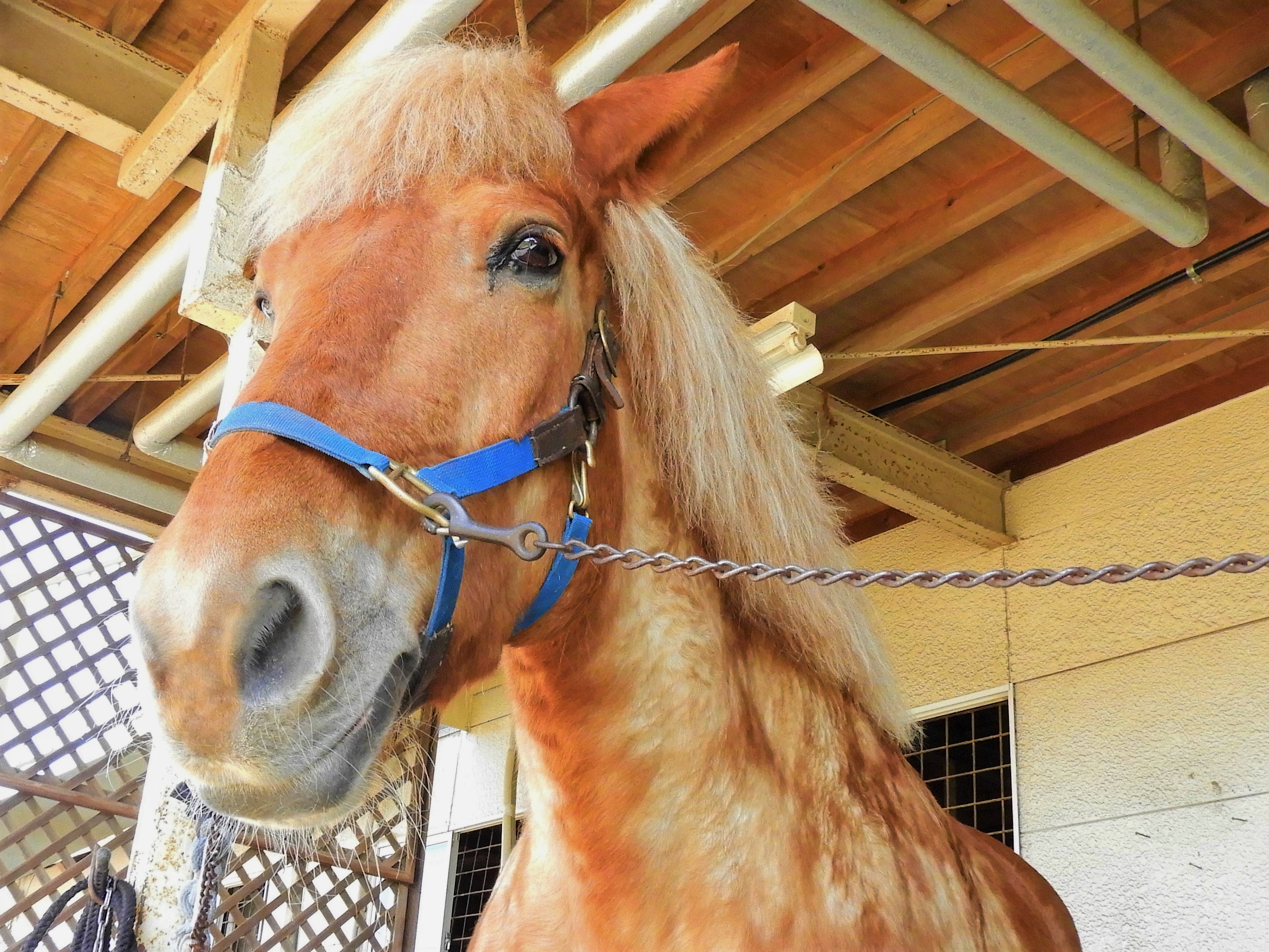 インストラクターが馬を引くので